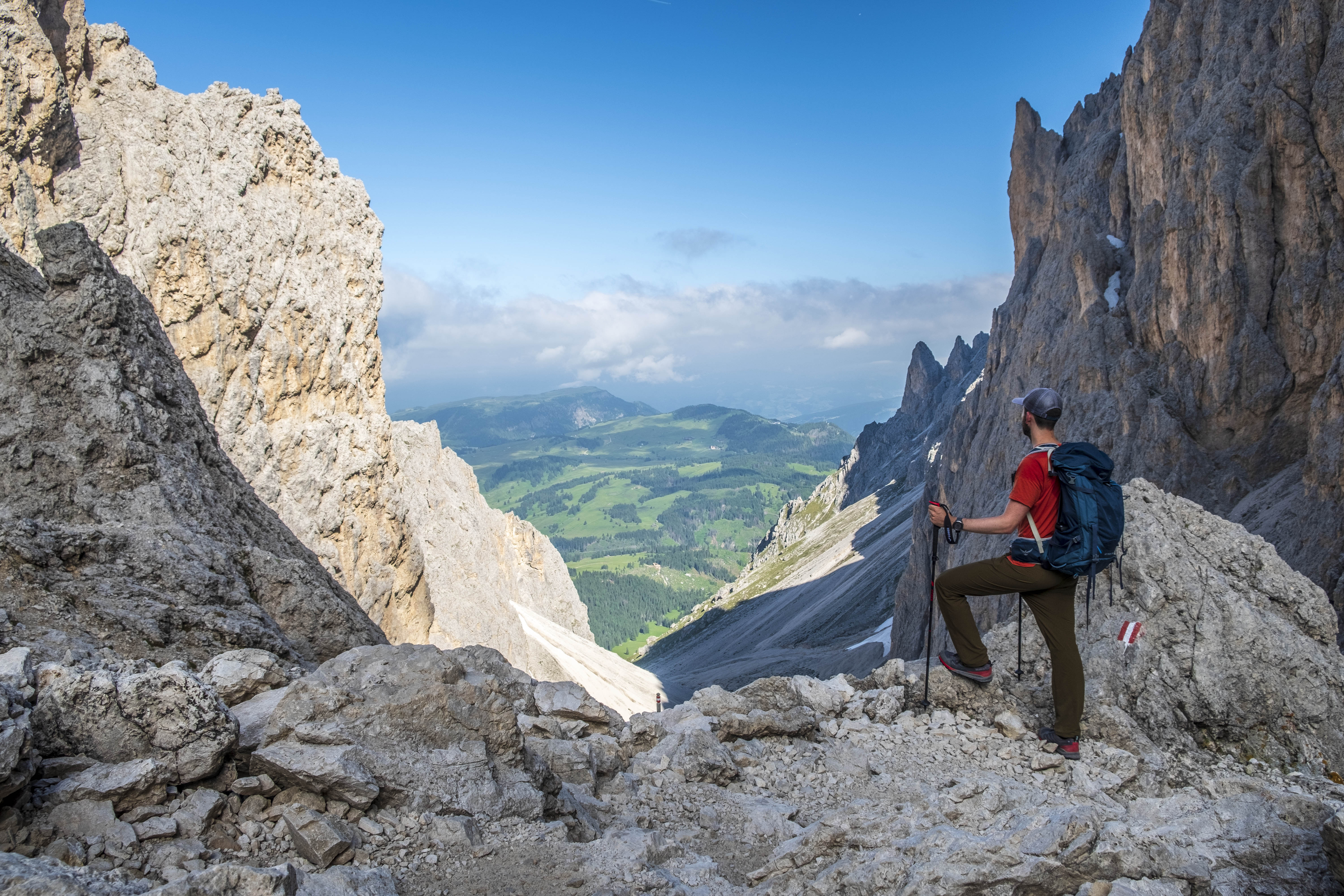 There is no shortage of vantage points in this section either, with the view opening up towards the Puez-Odle Dolomites group. Rifugio Comici awaits us as the last stage of the loop, where we detour for a short additional ascent to the Piz Sella to enjoy a solitary stop for our packed lunch.