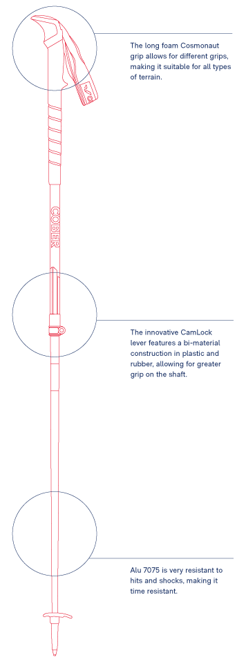Freedom is a pair of adjustable aluminium ski touring ski poles with the innovative CamLock lever, whose bi-material construction allows for greater grip on the tube. Perfect both uphill and downhill! Features a long foam grip suitable for different situations. Dedication. Safety. Freedom. That's ski mountaineering. What are you waiting for?