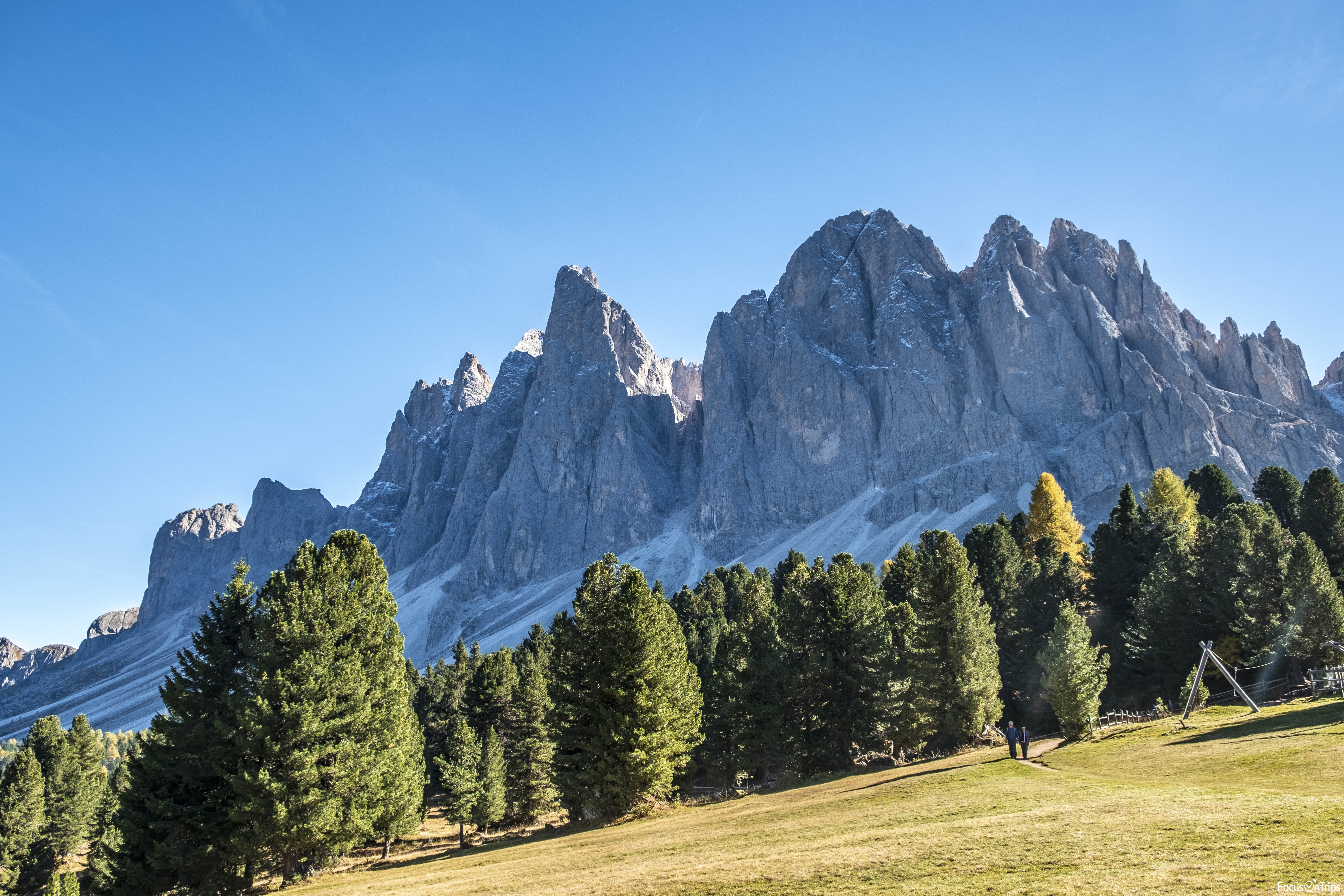 Ci troviamo nella splendida Val di Funes in Alto Adige, famosa per essere sovrastata dall’iconico profilo delle Dolomiti delle Odle. Un insieme di cime e torri aguzze dal profilo unico ed inconfondibile, attraversate da ripide, strette ed emozionanti forcelle.