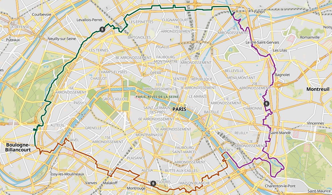 Questo incredibile percorso attraversa 9 distretti e ben 75 spazi verdi, si sviluppa tra boulevard des Maréchaux e il boulevard Périphérique e, pur trattandosi di un percorso urbano, ha come obiettivo quello di promuovere gli spazi verdi di Parigi. Il GR 75 rende la capitale uno straordinario terreno sportivo, di svago e cultura a meno di cinque chilometri dalla Torre Eiffel.